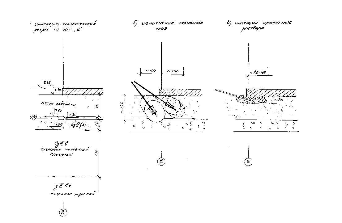 Рис.2. Уплотнение песчаного основания по оси “В”